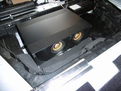 フロントスピーカーに合わせてサブウーファーもトップグレードを、3列目シート下に加工を施し取付いたしました。この位置に取付できたので、カーゴスペースなどを犠牲にすることなく取付できました。