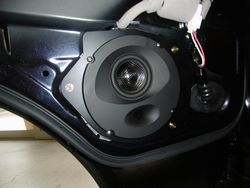 ハイエースは取付け鉄板口径が小さいのと、内装までのクリアランスがない為普通には取付することができませんが、ソニックプラスセンター大阪さんで扱っているバッフルを使い、鉄板加工をすることで取付け可能になります。今回はこのバッフルを使用し取付け致しました。