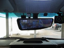 リアガラスにカーテンをしている為後ろが見れないということで、アルパインのデジタルミラーも取り付けさせて頂きました。