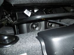 運転席シート下にはソニックデザインのサブウーファーTBM-SW77iを取付し、助手席下にフロントスピーカーとサブウーファー用のパラーアンプGM-D8400を取付いたしました。