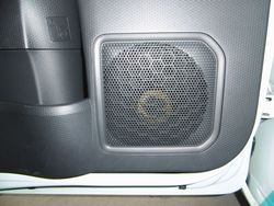 ダイハツはスピーカー取付口径が小さいので、鉄板加工をしバッフルを製作し取付け致しました。