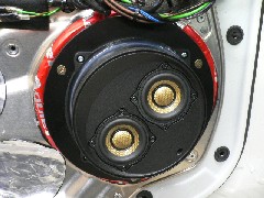 純正リアトレイ位置にSD-N77Nを8本、オリジナルエンクロージャーを製作し取り付けされています。