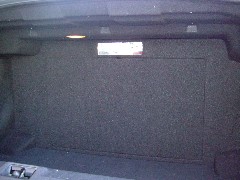少しでも多くトランクスペースが使えて、スペアタイヤも脱着出来るように、トランク背面にアンプラックを製作しました。カバーを着ければ見た目はわかりません。 |