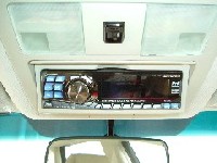 | マップランプ裏の純正サングラスホルダーがあった場所に、PKG-H701Sのコントロール部をオフセットしました。さり気無い取付で、操作性も良くなっています。 |