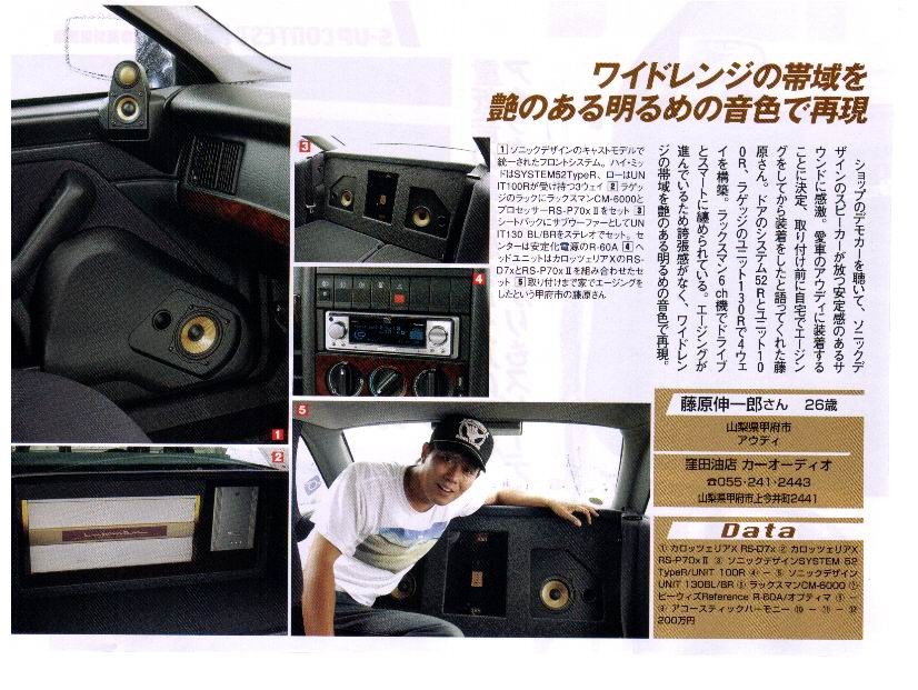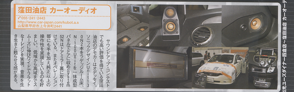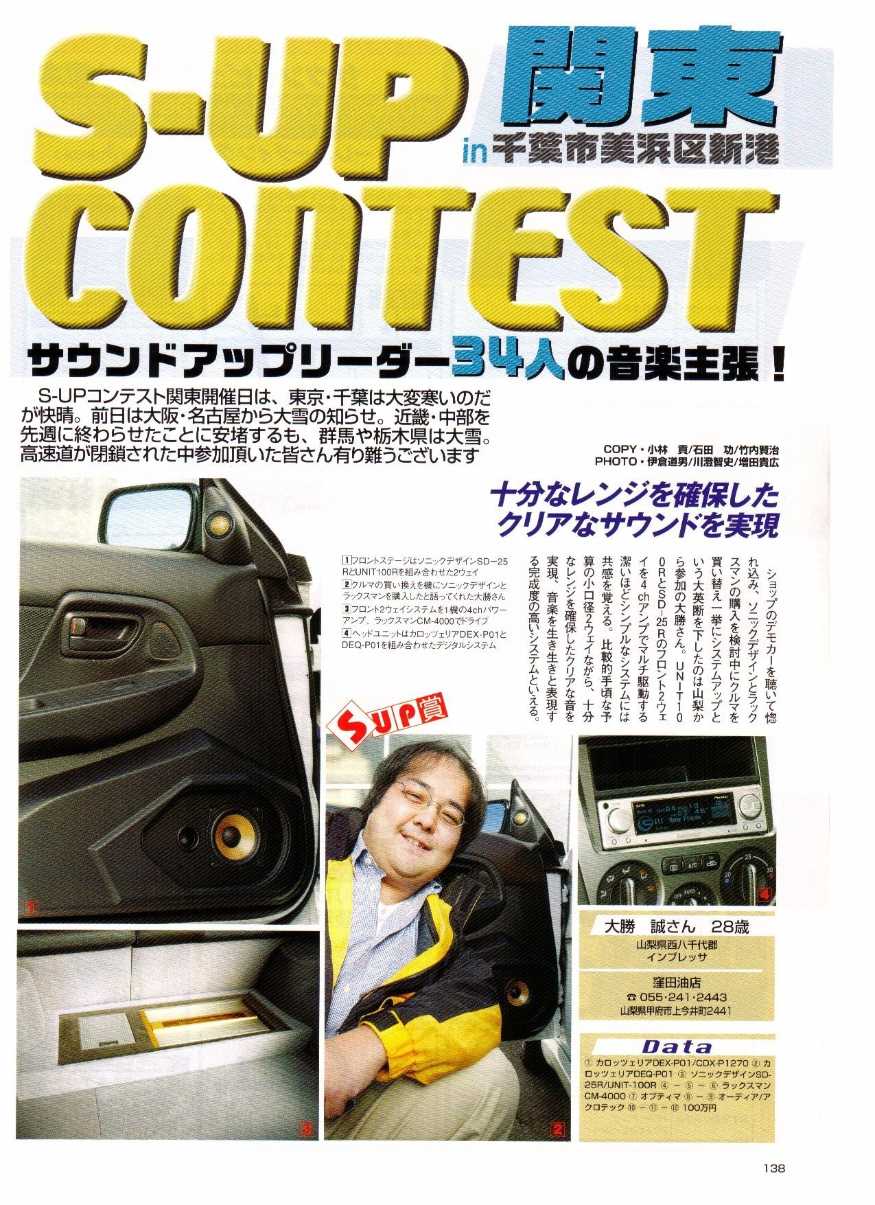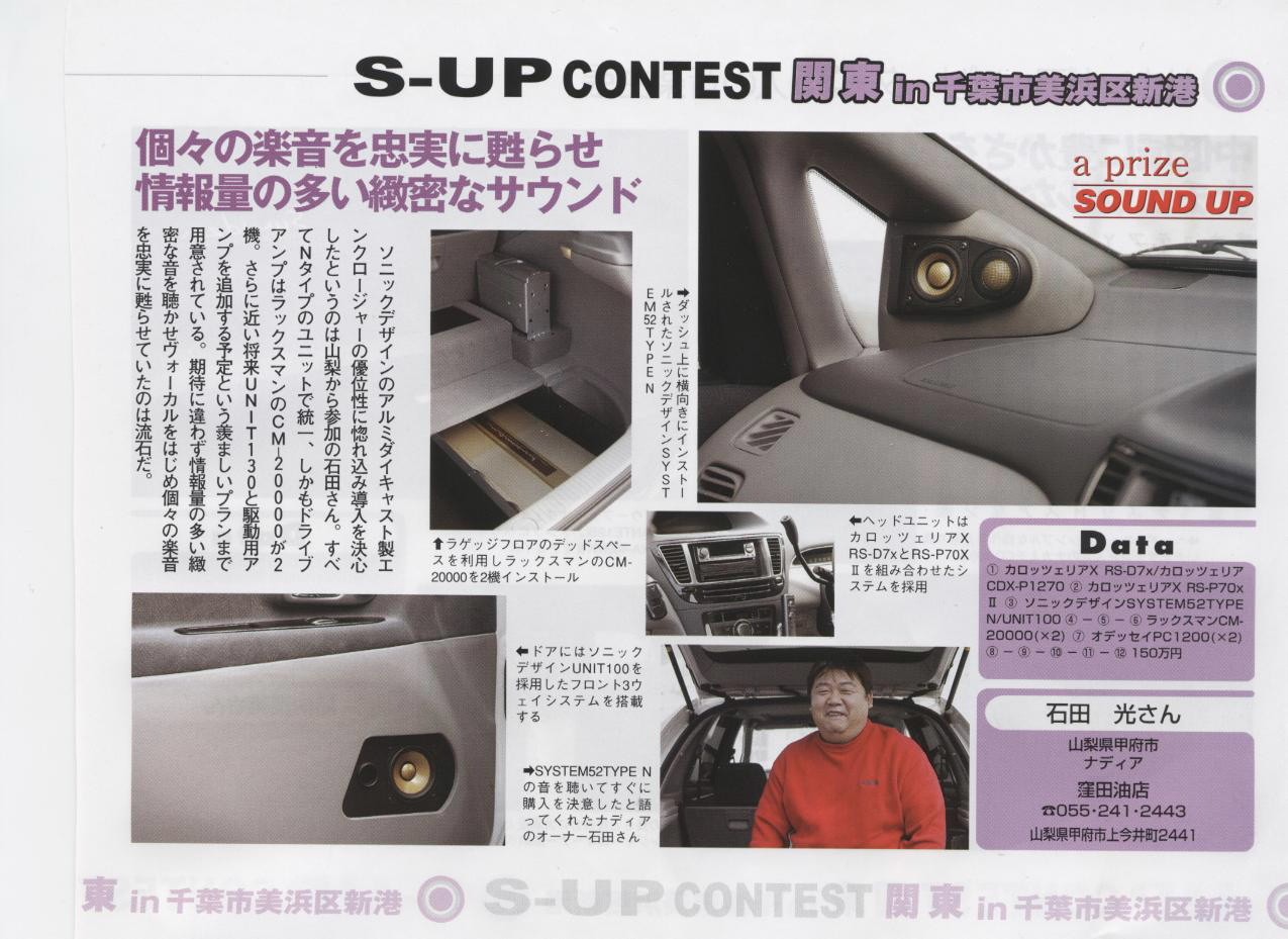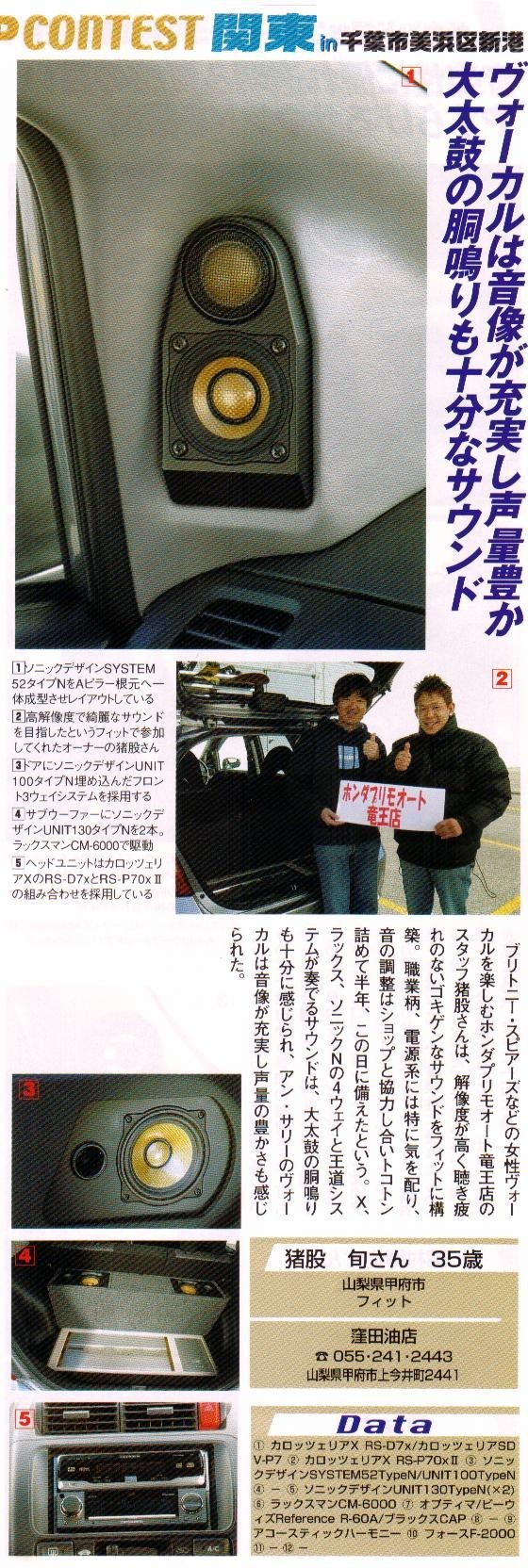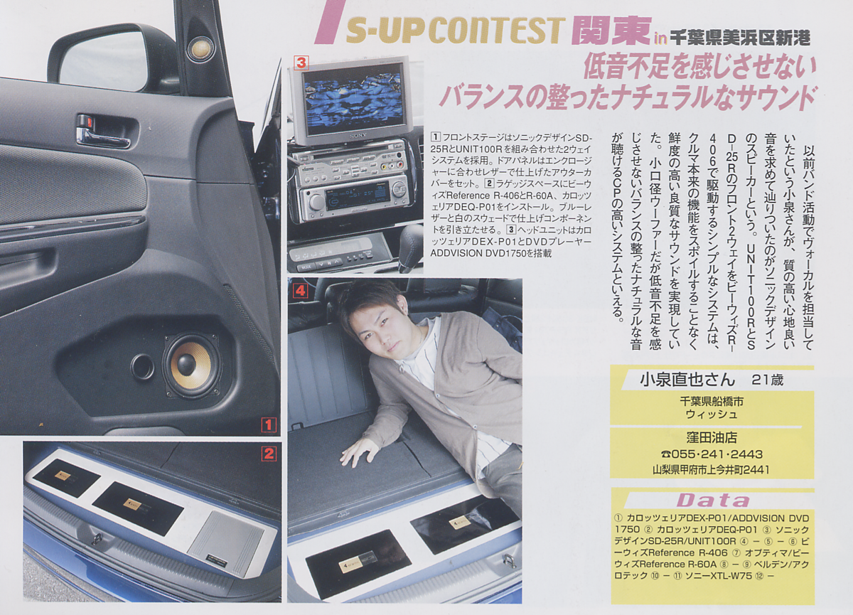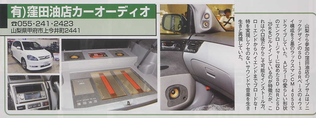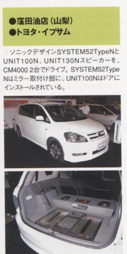 第4回モービル・エレクトロニクス・ショーに当店デモカー「イプサム」を出展しました。 サウンドアップ・コンテストに、渡辺様が掲載されました。